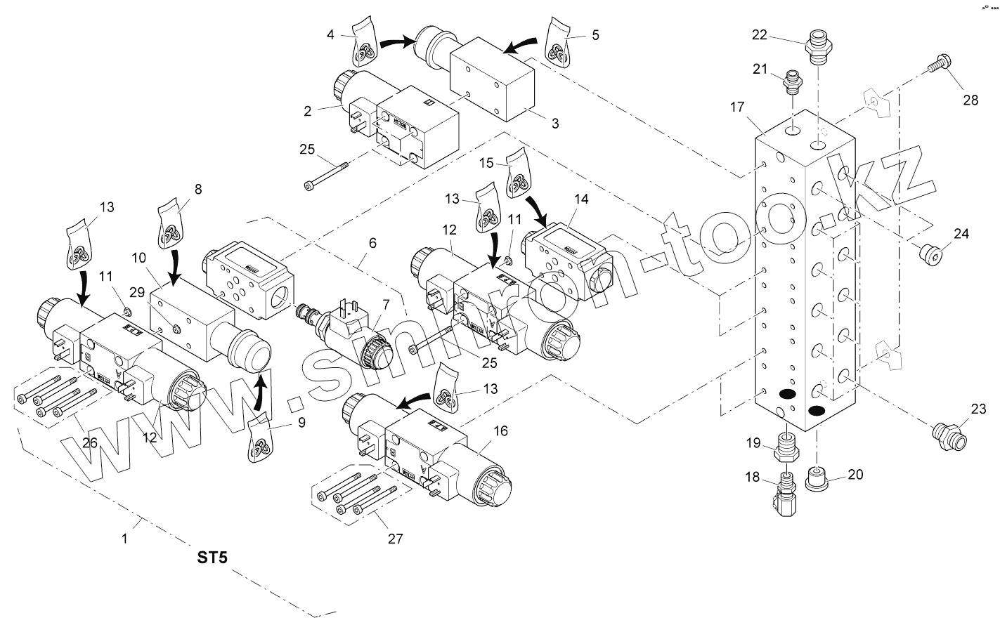 Каталог запасных частей к технике: VOGELE SUPER 1103-2. VALVE BLOCK: HYDRAULIC RAMS