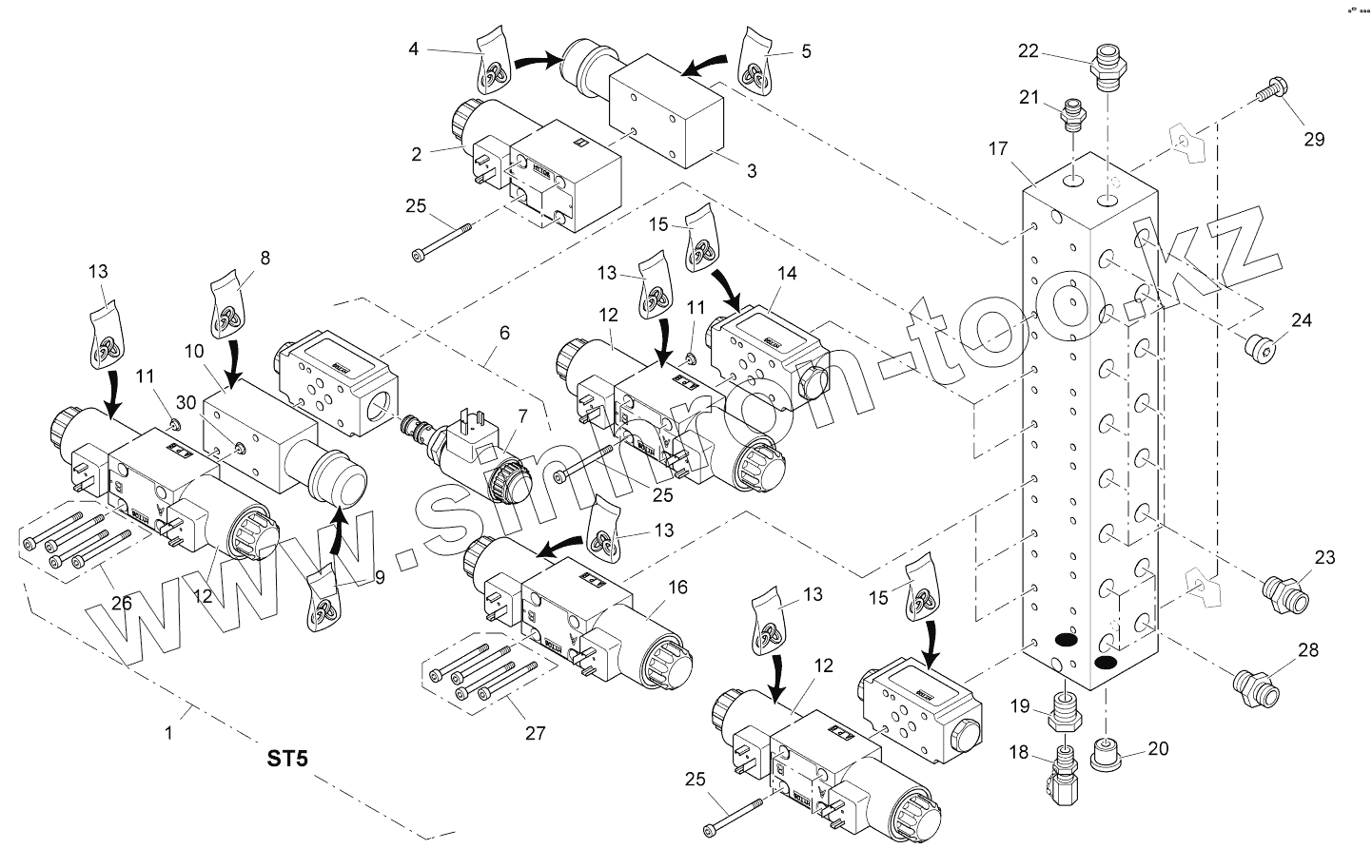 Каталог запасных частей к технике: VOGELE SUPER 1103-2. VALVE BLOCK: HYDRAULIC RAMS