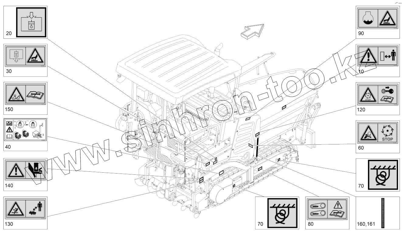 Каталог запасных частей к технике: VOGELE SUPER 1300-3. OPERATING INSTRUCTIONS/WARNING RIGHT