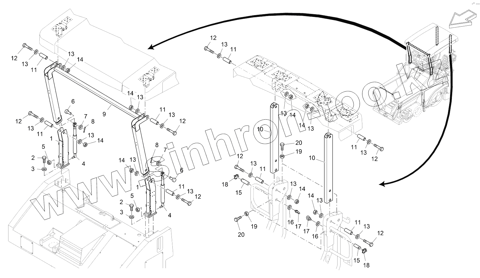 Каталог запасных частей к технике: VOGELE SUPER 1303-2. CANOPY FRAME COMPLETE