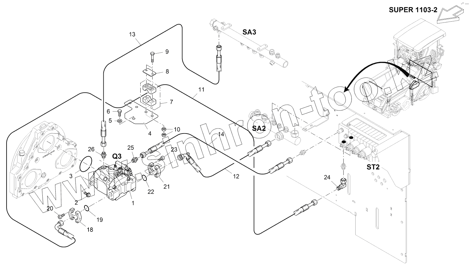 Каталог запасных частей к технике: VOGELE SUPER 1303-2. CONVEYOR MIXED MAT., HYDR.
