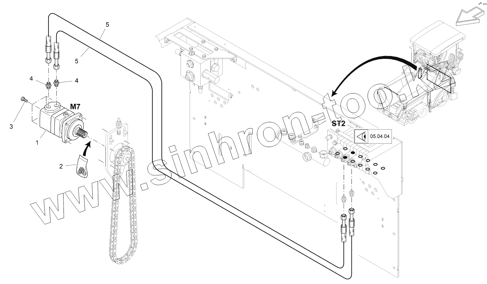 Каталог запасных частей к технике: VOGELE SUPER 1303-2. DRIVE: CONVEYOR, RIGHT HYD.