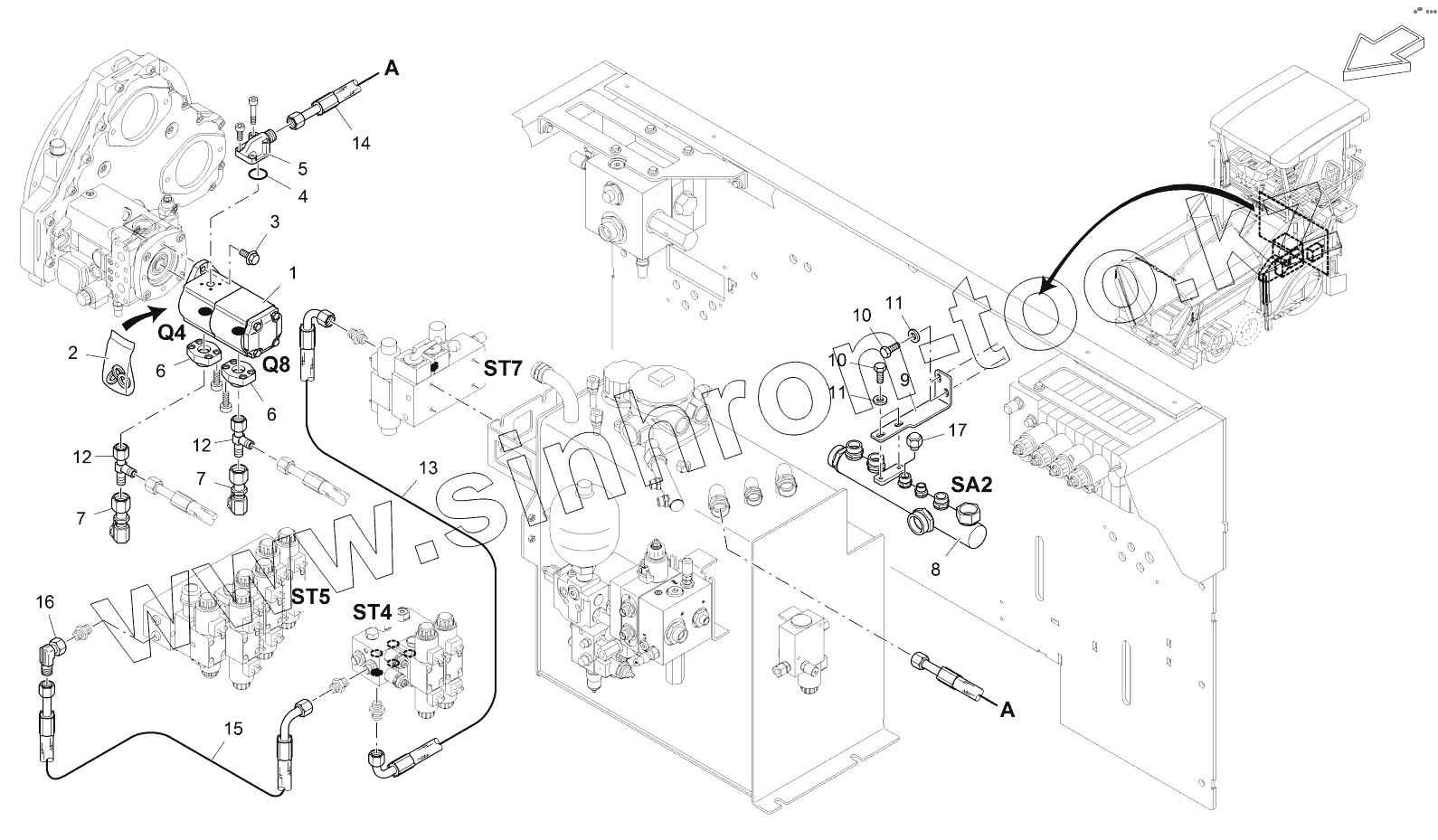 Каталог запасных частей к технике: VOGELE SUPER 1303-2. PUMP: HYDRAULIC RAMS
