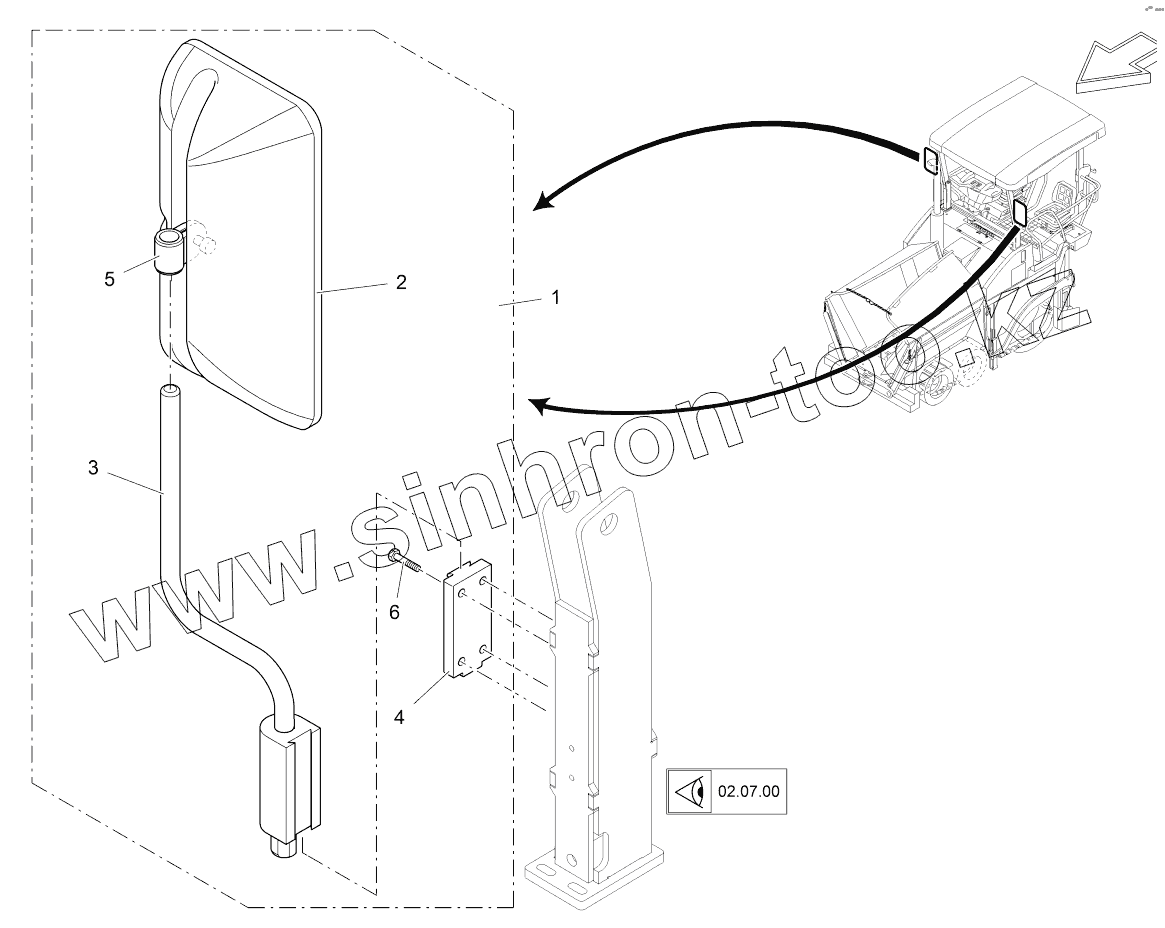 Каталог запасных частей к технике: VOGELE SUPER 1303-2. REAR VIEW MIRROR WITH FIXATION