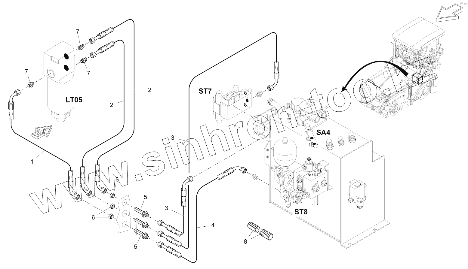 Каталог запасных частей к технике: VOGELE SUPER 1303-2. ROAD TRAVEL HYDRAULIC