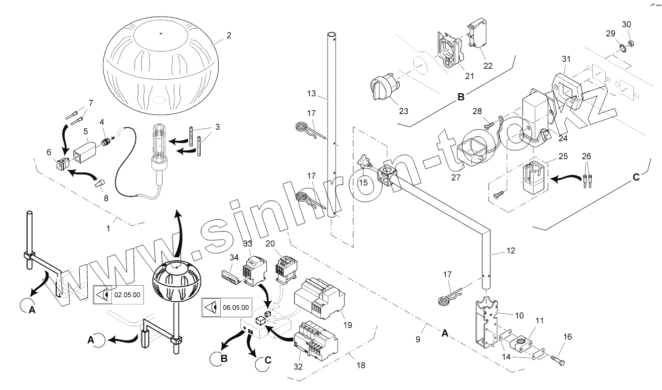 Каталог запасных частей к технике: VOGELE SUPER 1600-2. 1 LIGHT BALLOON WITH HOLDER