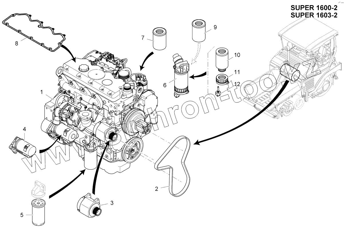 Каталог запасных частей к технике: VOGELE SUPER 1600-2. DIESEL ENGINE COM3 / EPA