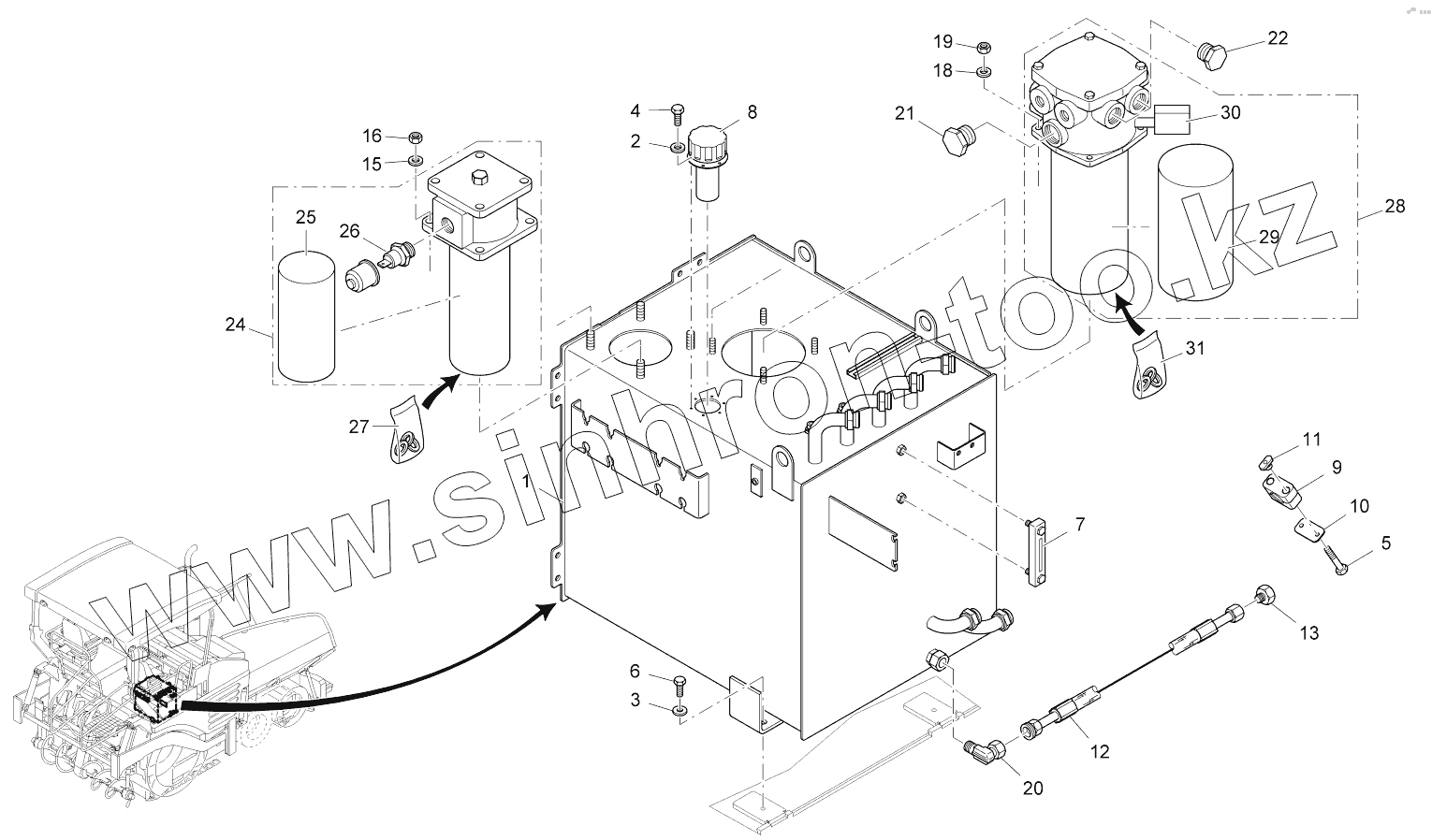 Каталог запасных частей к технике: VOGELE SUPER 1600-2. HYDRAULIC TANK