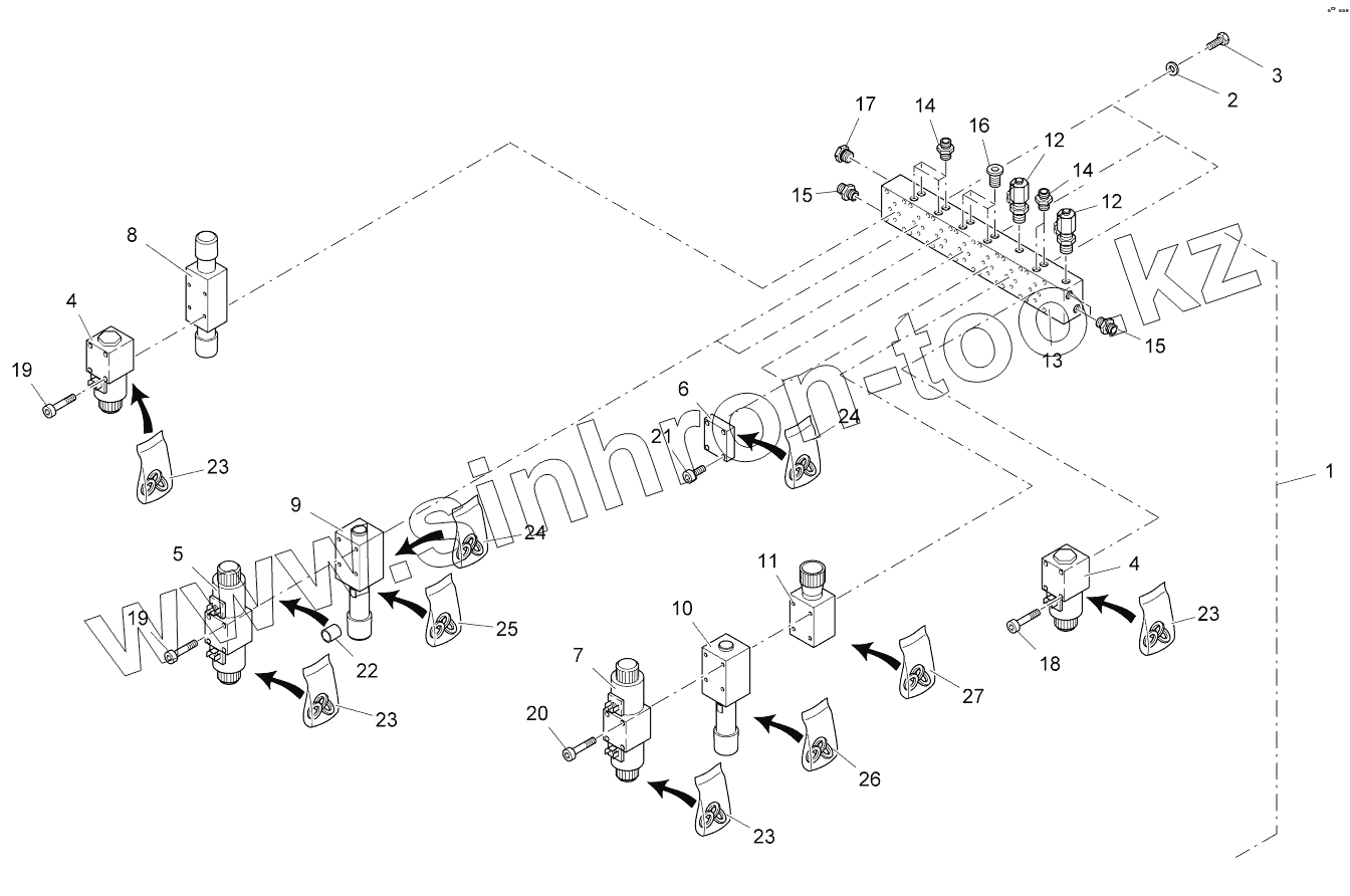 Каталог запасных частей к технике: VOGELE SUPER 1600-2. VALVE BLOCK CYLINDER FUNCTION 1