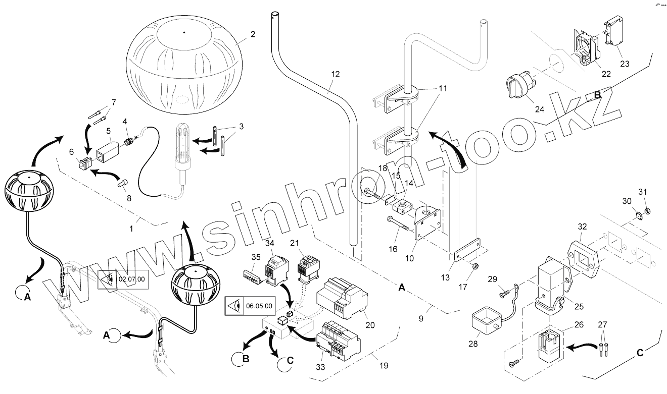 Каталог запасных частей к технике: VOGELE SUPER 1800-2. 2 LIGHT BALLOONS WITH ROOF HOLDER