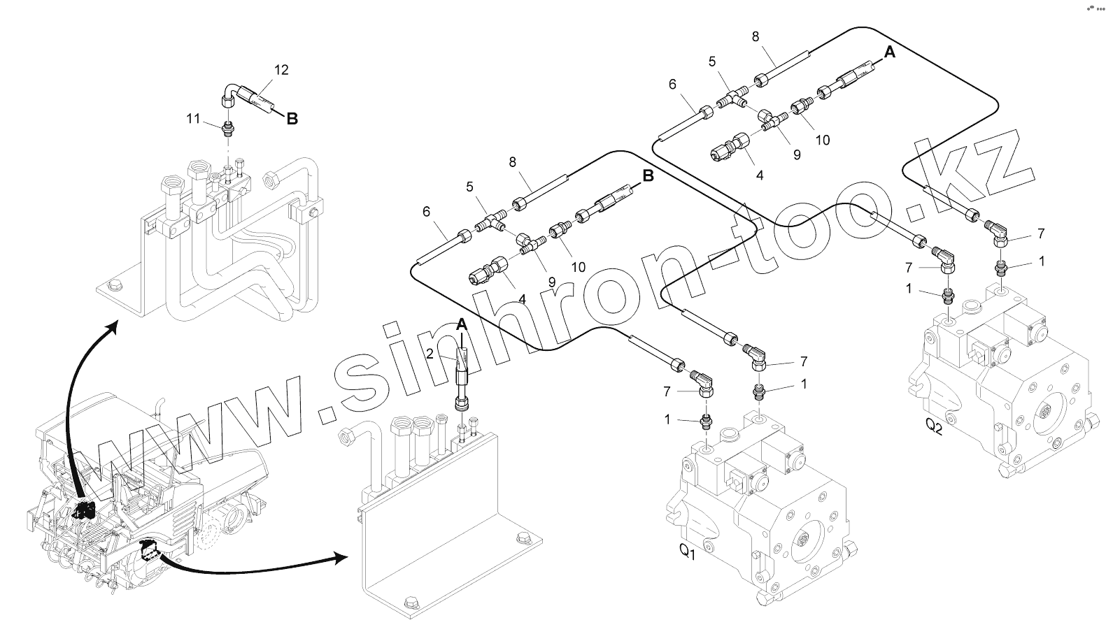 Каталог запасных частей к технике: VOGELE SUPER 1800-2. ADJUSTMENT TRAVEL DRIVE HYDR.
