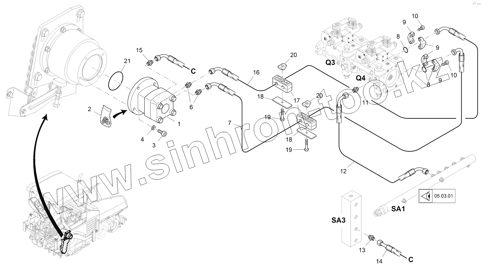 Каталог запасных частей к технике: VOGELE SUPER 1800-2. ANTRIEB BAND RE. HY.