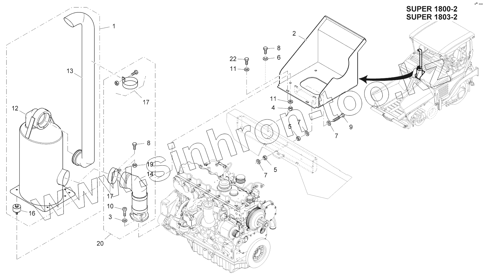 Каталог запасных частей к технике: VOGELE SUPER 1800-2. SILENCER