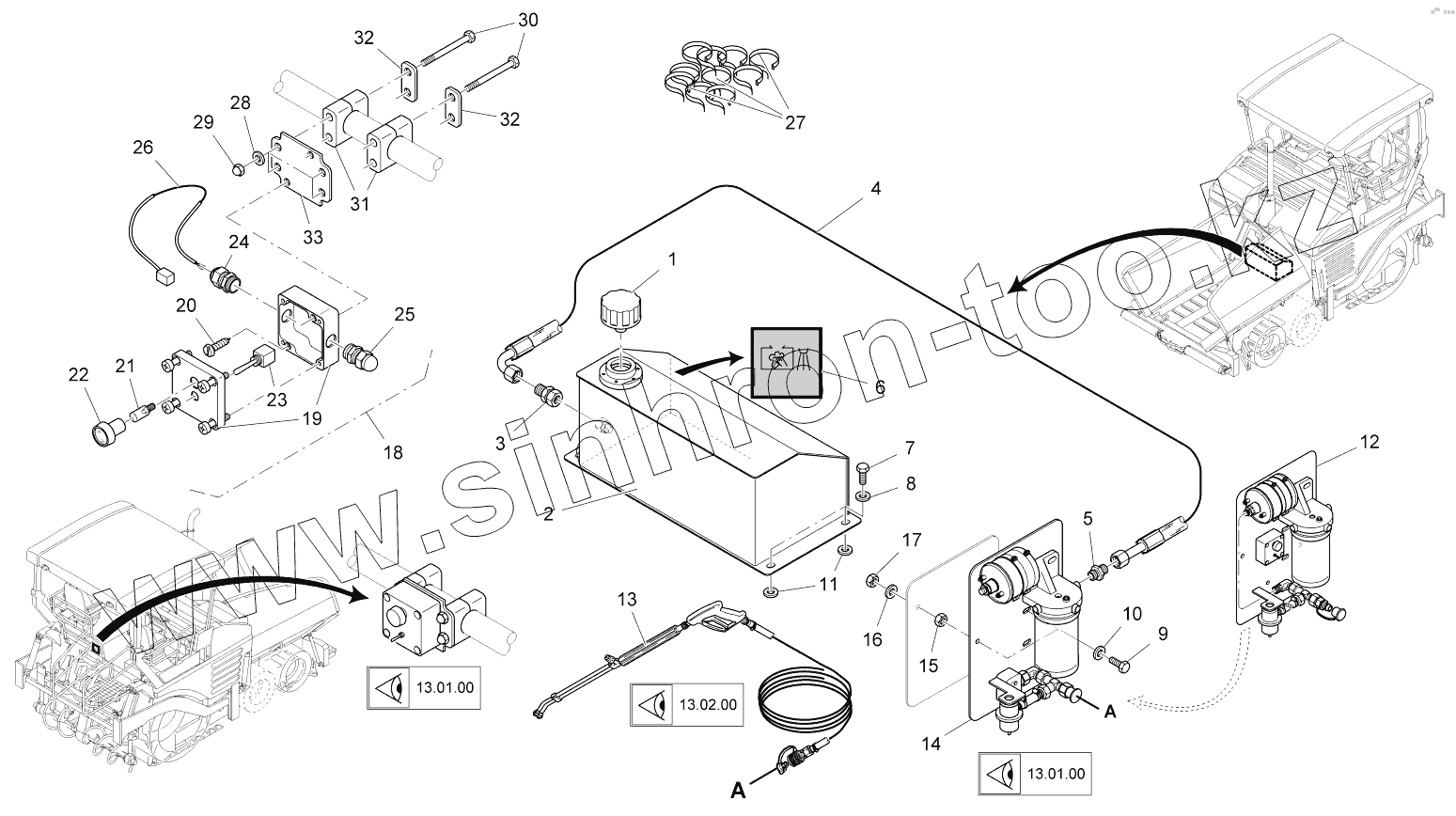 Каталог запасных частей к технике: VOGELE SUPER 1800-2SJ. TANK FOR CLEANING SYSTEM