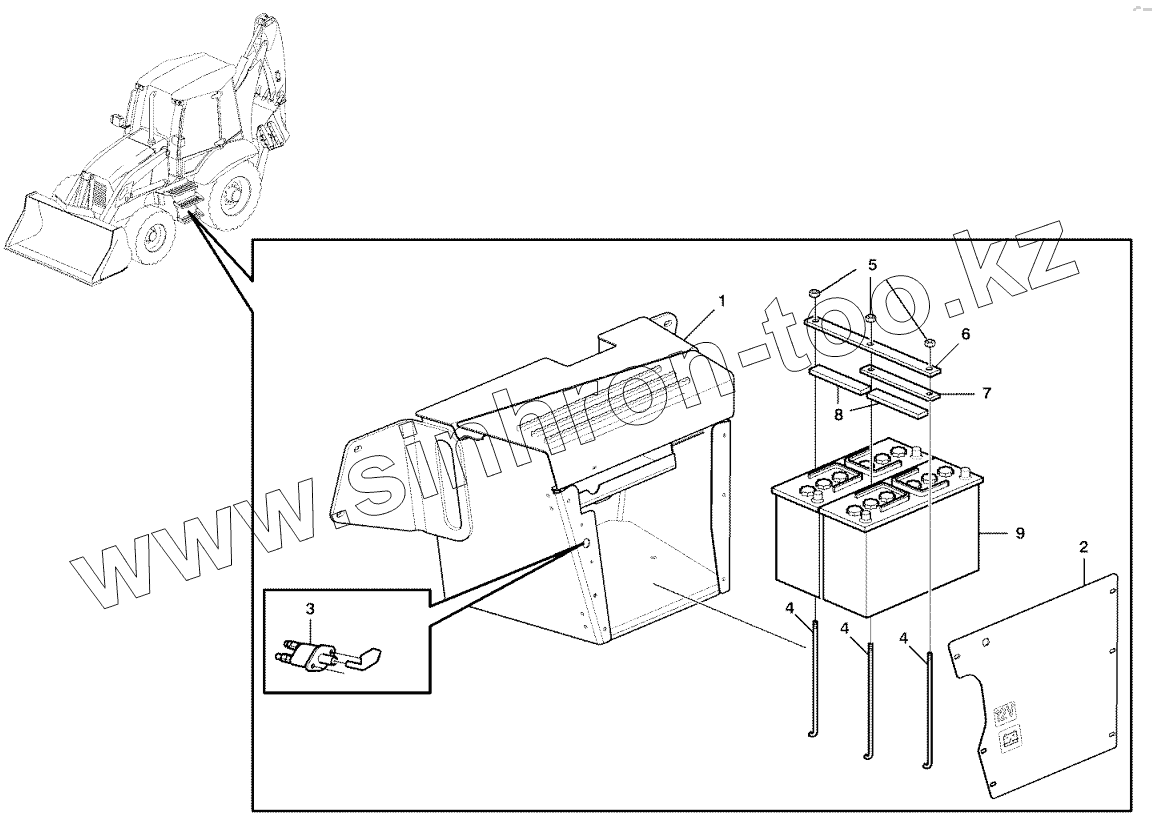 Каталог запасных частей к технике: Volvo BL60. Battery box with fitting parts