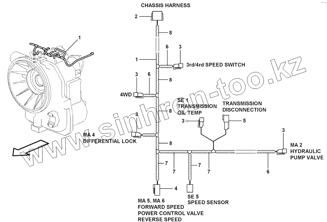 Каталог запасных частей к технике: Volvo BL60. Cable harness, transmission. 11891076, 11891077