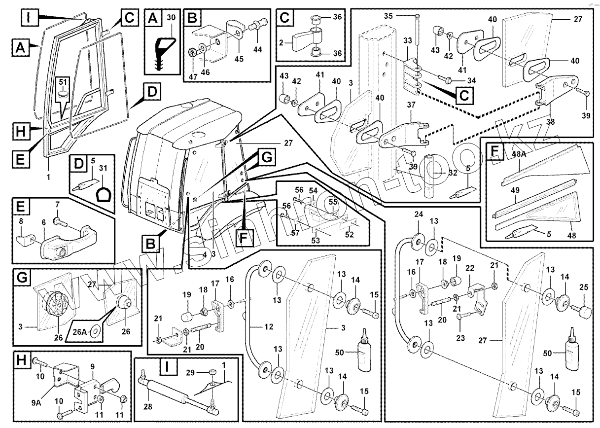 Каталог запасных частей к технике: Volvo BL60. Door with fitting parts 11298190