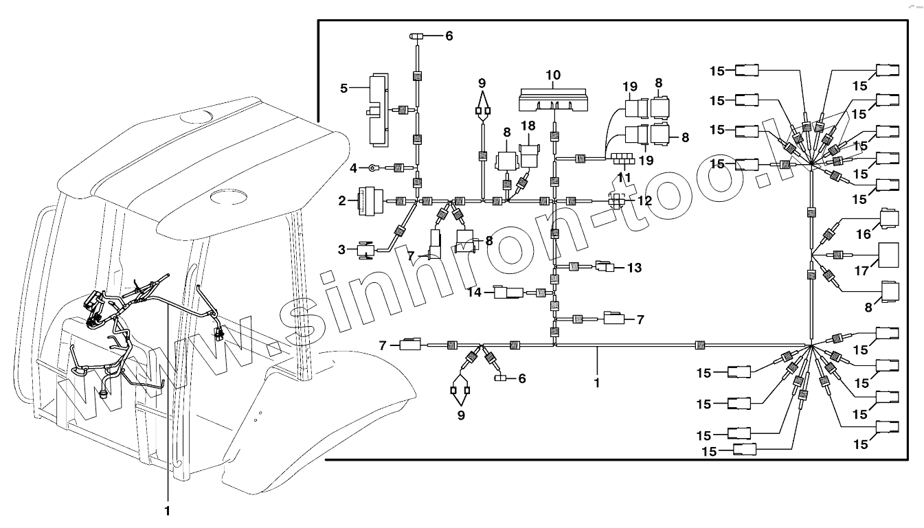 Каталог запасных частей к технике: Volvo BL61. Cable harness, control panel right SER NO -10020