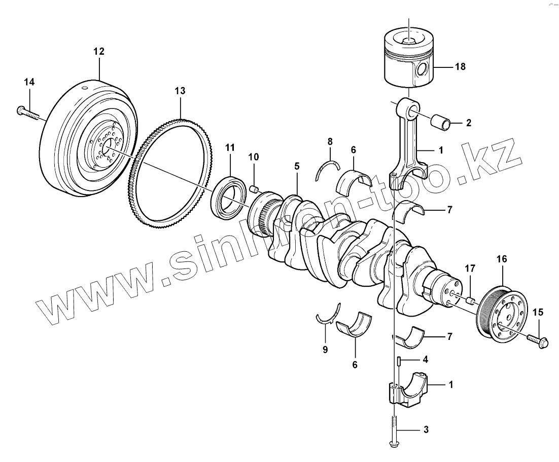 Каталог запасных частей к технике: Volvo BL61. Crankshaft and related parts