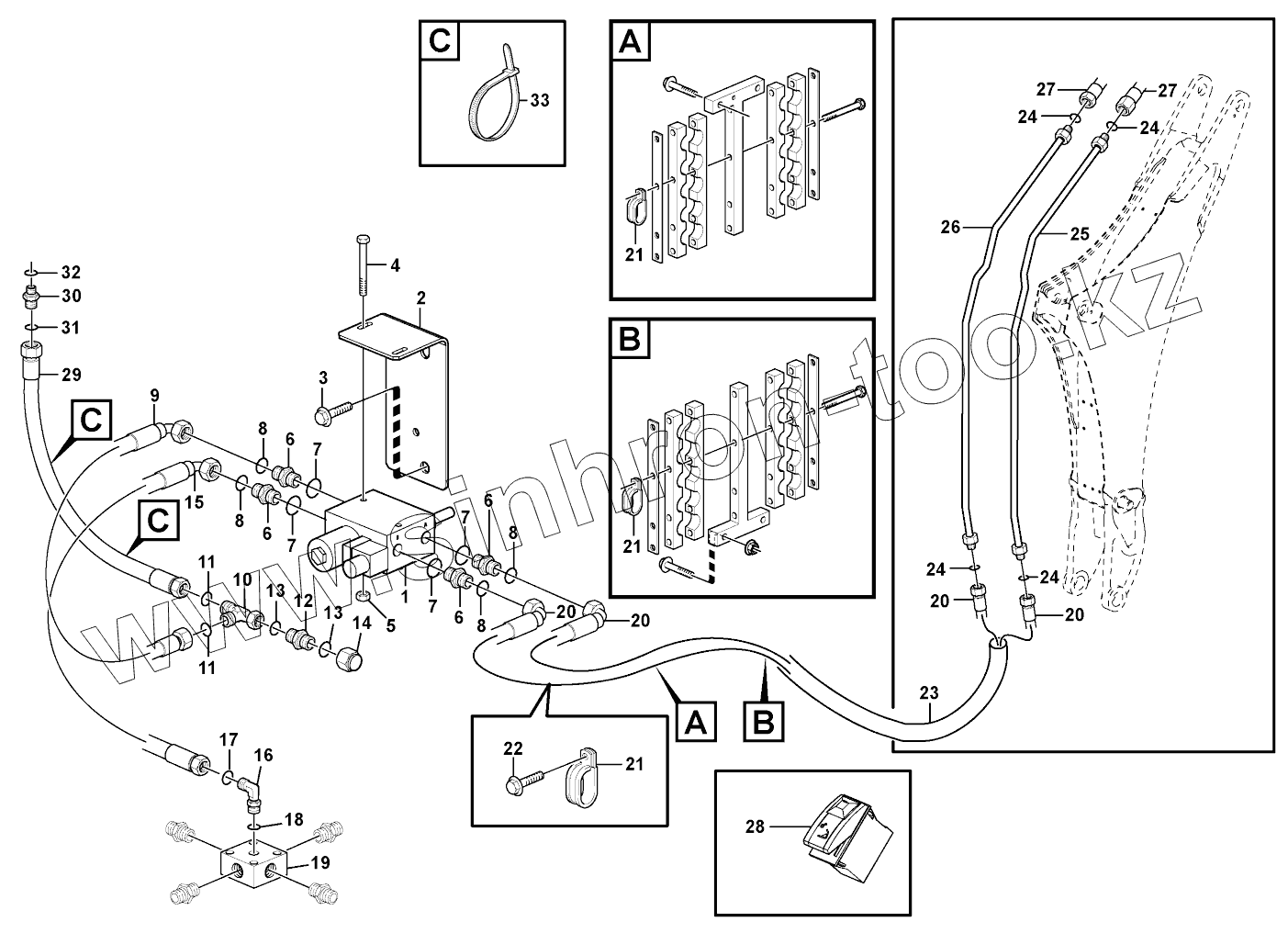 Каталог запасных частей к технике: Volvo BL61. Hydraulic attachment bracket digger 11891448, 11891449, 11891450, 11891451