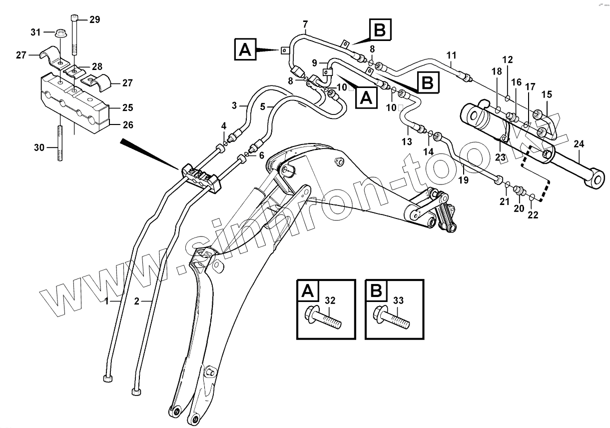 Каталог запасных частей к технике: Volvo BL61. Hydraulic system, bucket 11891418, S/N - 10626