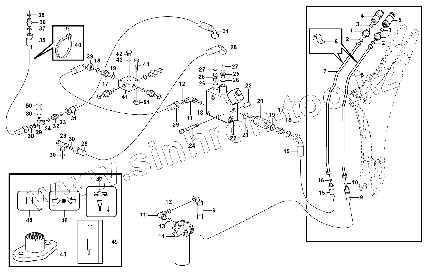 Каталог запасных частей к технике: Volvo BL61. Hydraulic system, hammer