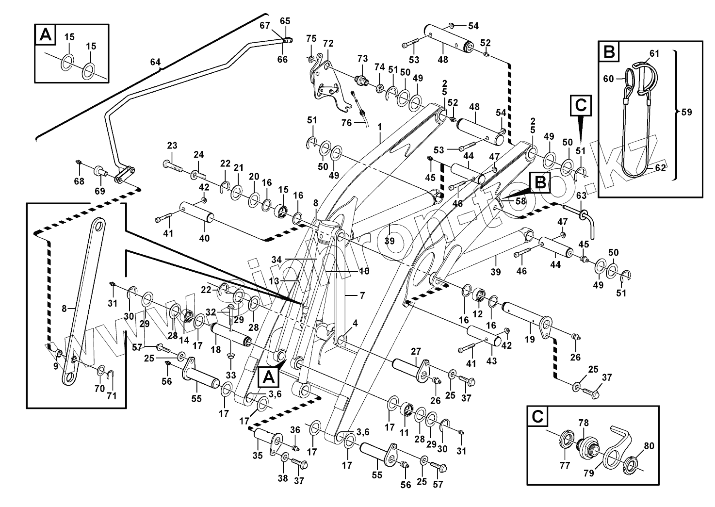 Каталог запасных частей к технике: Volvo BL61. Lifting framework with assembly parts