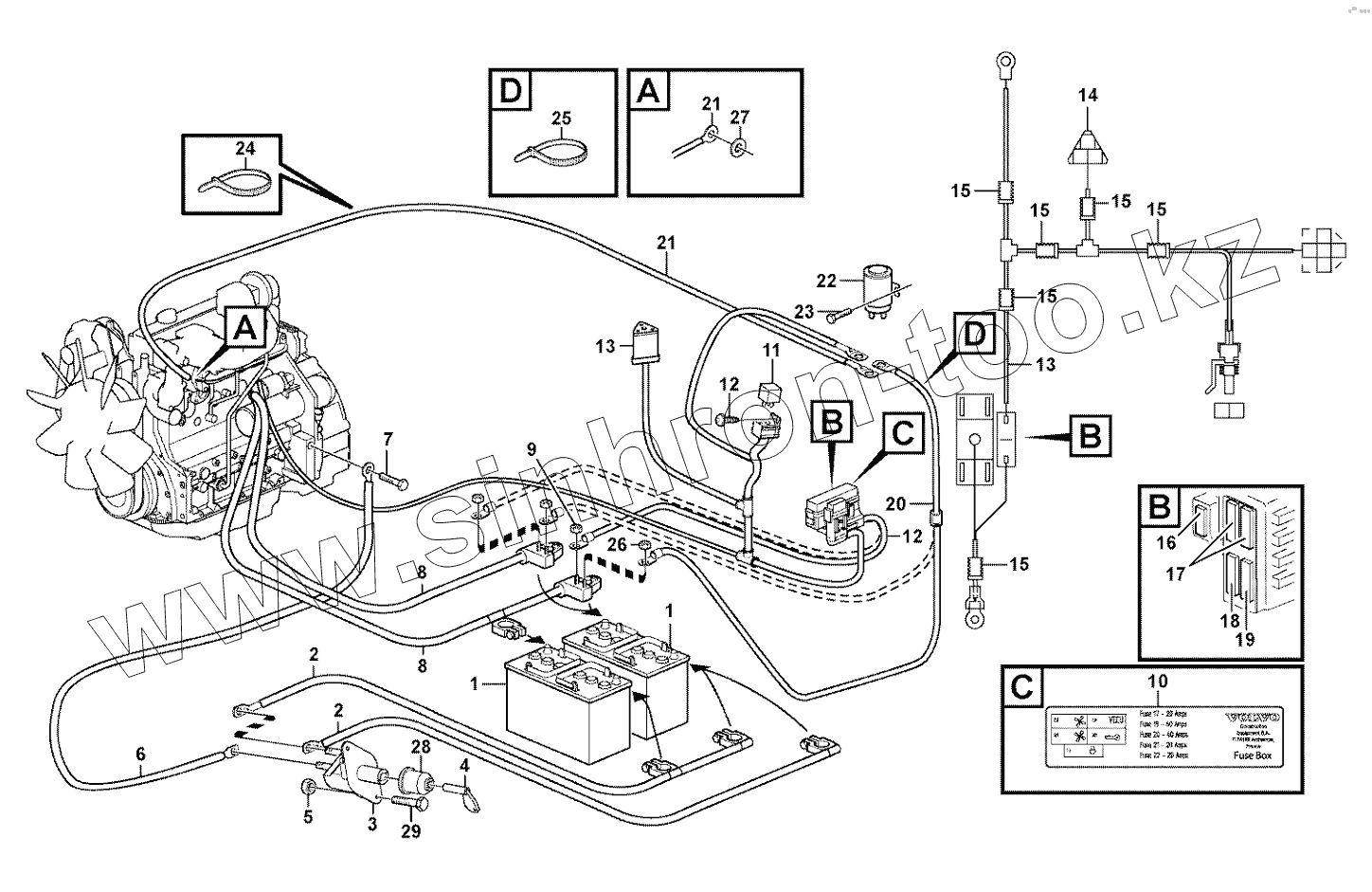Каталог запасных частей к технике: Volvo BL61 Plus. Battery cable and main switch
