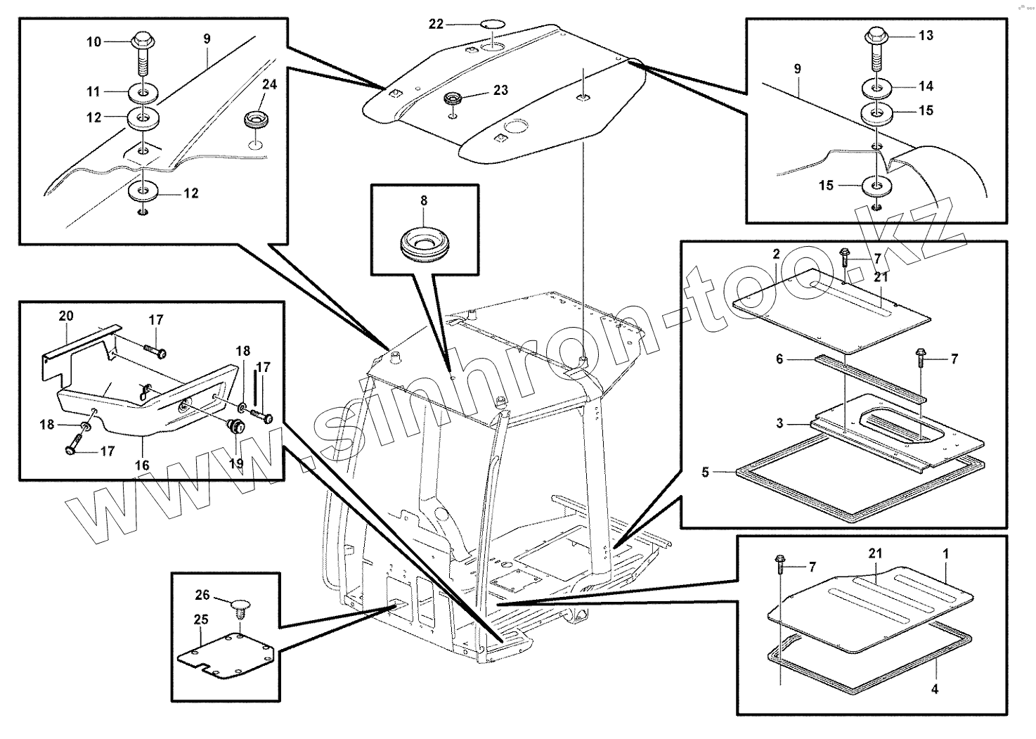 Каталог запасных частей к технике: Volvo BL61 Plus. Cab body: roof and floor panel