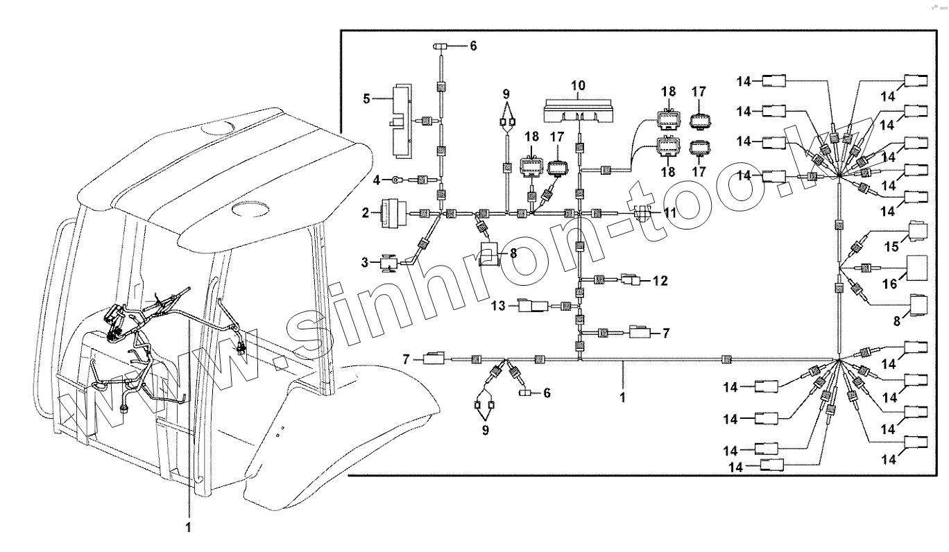 Каталог запасных частей к технике: Volvo BL61 Plus. Cable harness, control panel right