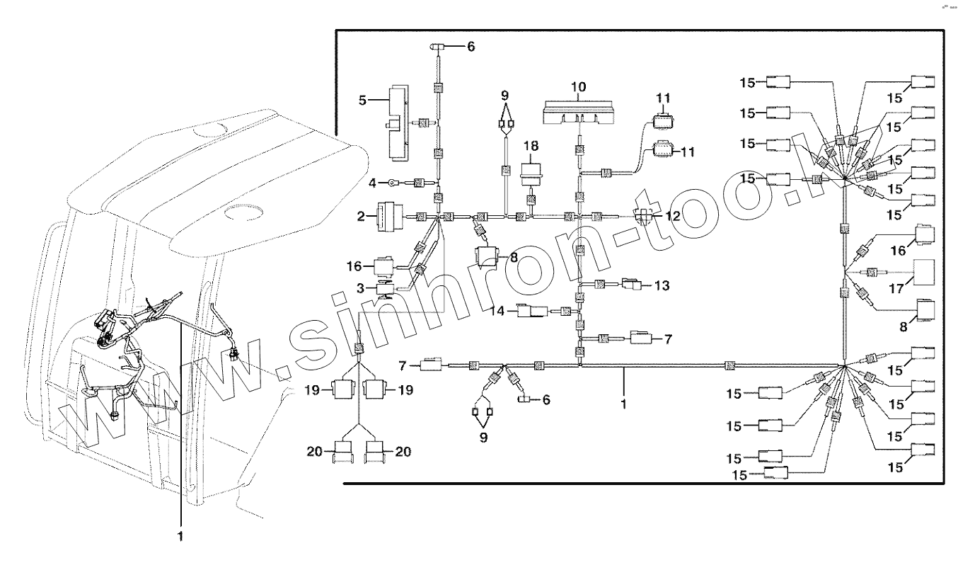 Каталог запасных частей к технике: Volvo BL61 Plus. Cable harness, control panel right 11891595