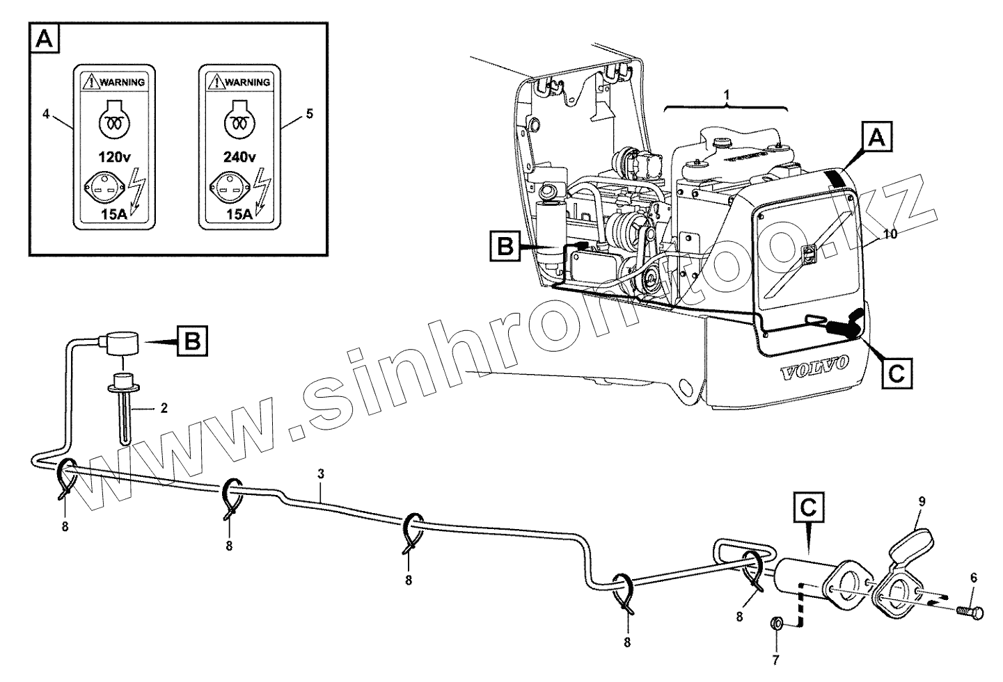 Каталог запасных частей к технике: Volvo BL61 Plus. Engine heater 11891429, 11891430
