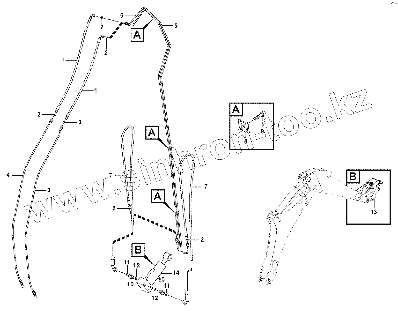 Каталог запасных частей к технике: Volvo BL61 Plus. Hydraulic attachment bracket digger
