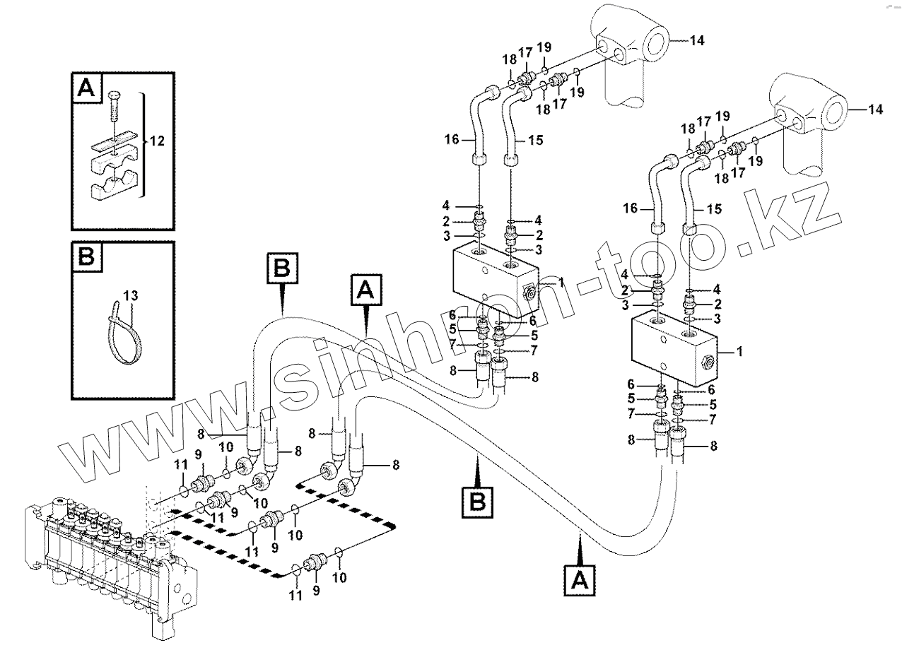 Каталог запасных частей к технике: Volvo BL61 Plus. Hydraulic system, stabiliser legs