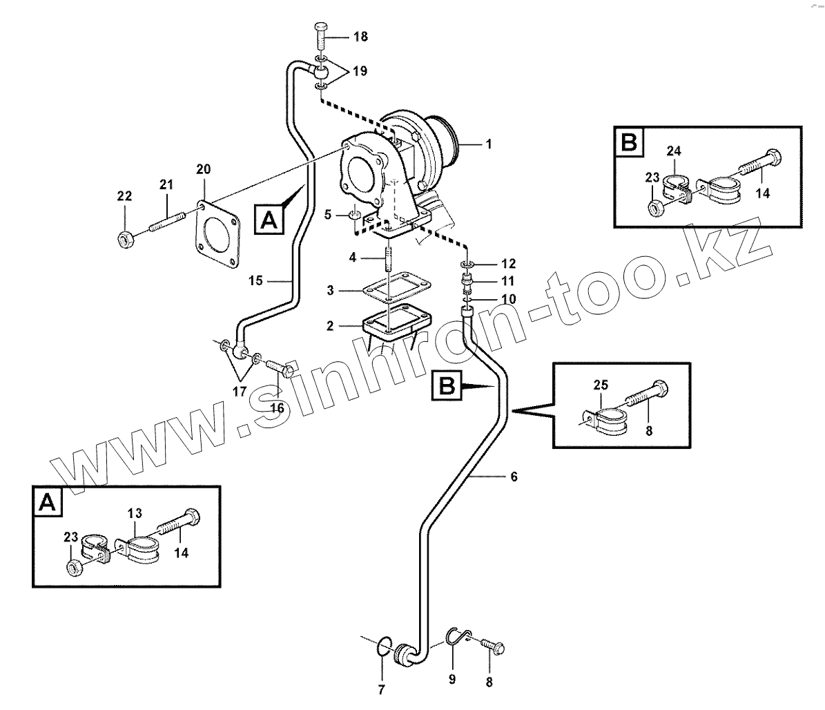 Каталог запасных частей к технике: Volvo BL61 Plus. Turbocharger with fitting parts