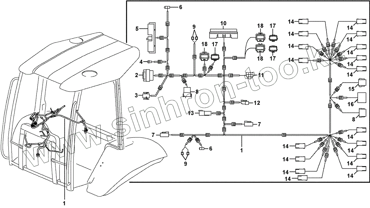 Каталог запасных частей к технике: Volvo BL70. 11891209, 11891224 Cable harness, control panel right