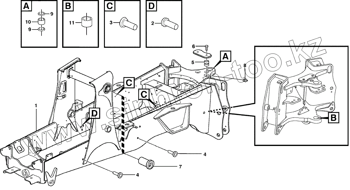 11880002 S/N - 11144, 11891005 S/N - 11144, 11891020 S/N - 11144, 11891065 S/N - 11144 Lifting framework with assembly parts