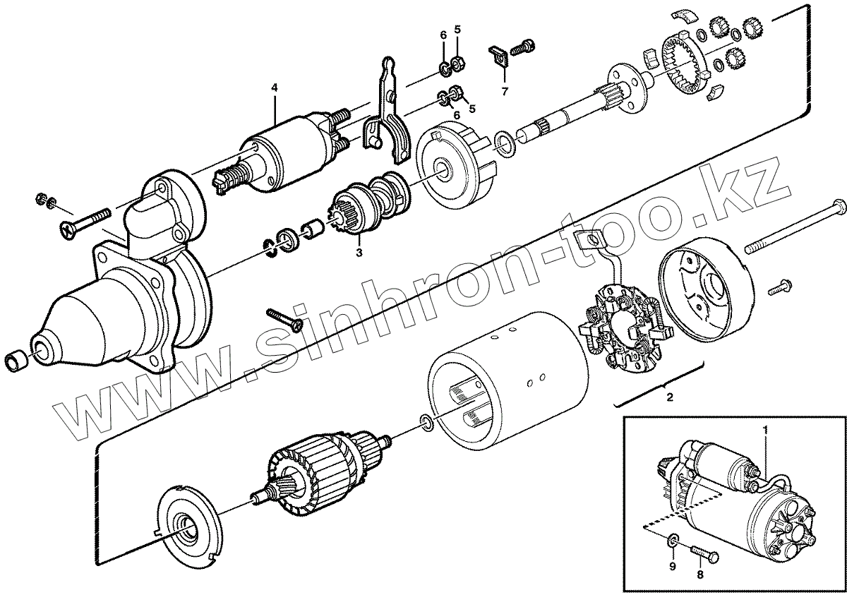 Каталог запасных частей к технике: Volvo BL70. Starter motor with assembling details