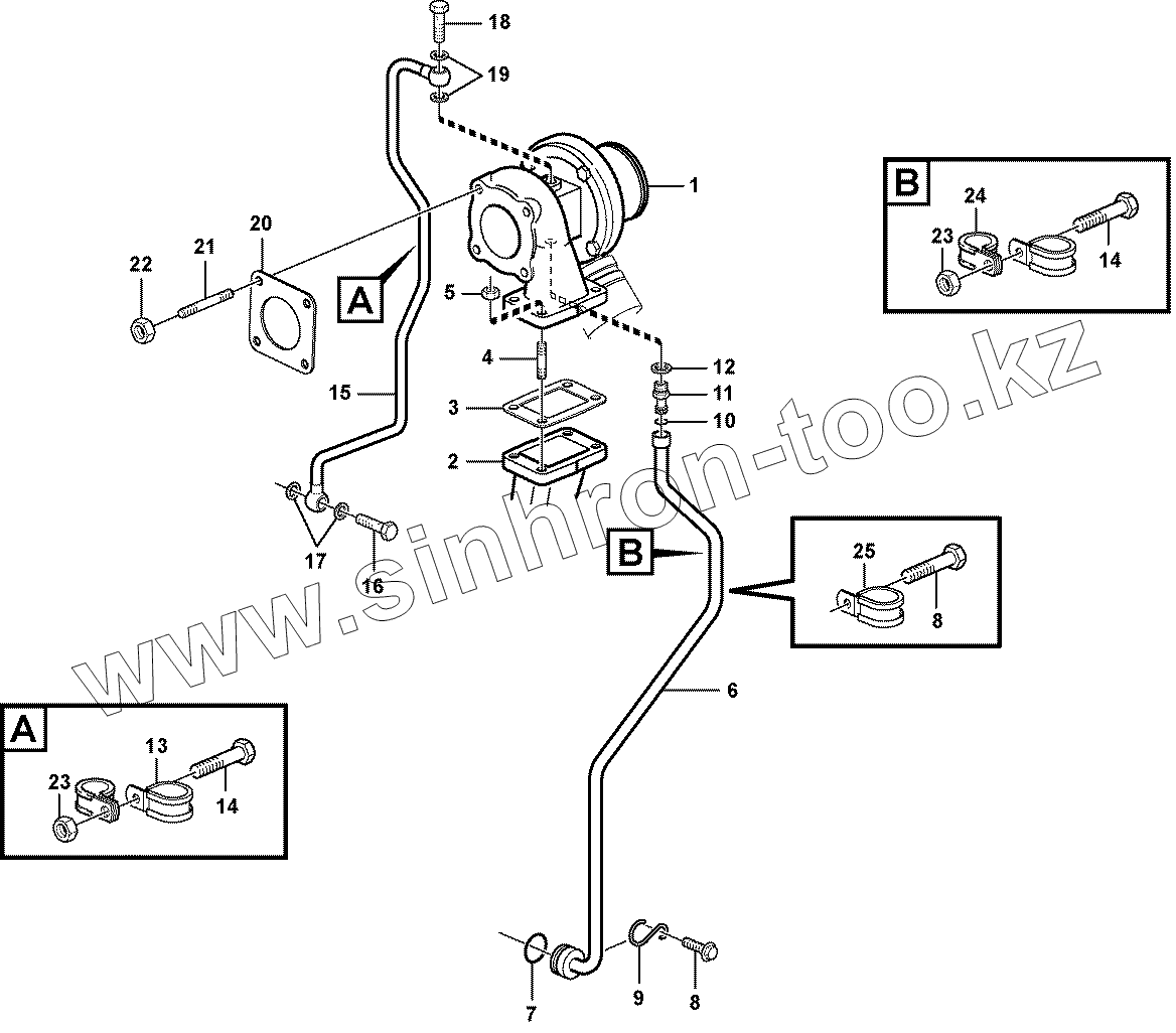 Каталог запасных частей к технике: Volvo BL71. 11883246, 11885148, 11887322 Turbocharger with fitting parts