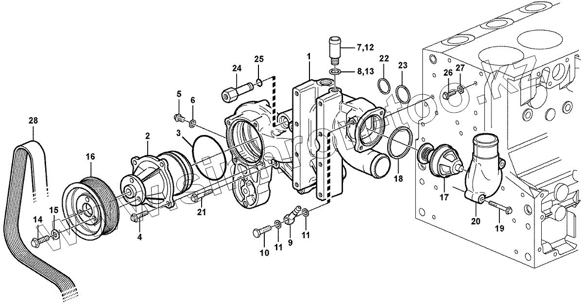 11883246, 11885148, 11887322 Water pump and thermostat housing