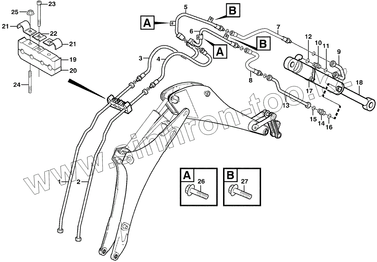 Каталог запасных частей к технике: Volvo BL71. 11891041, 11891410 Hydraulic system, bucket