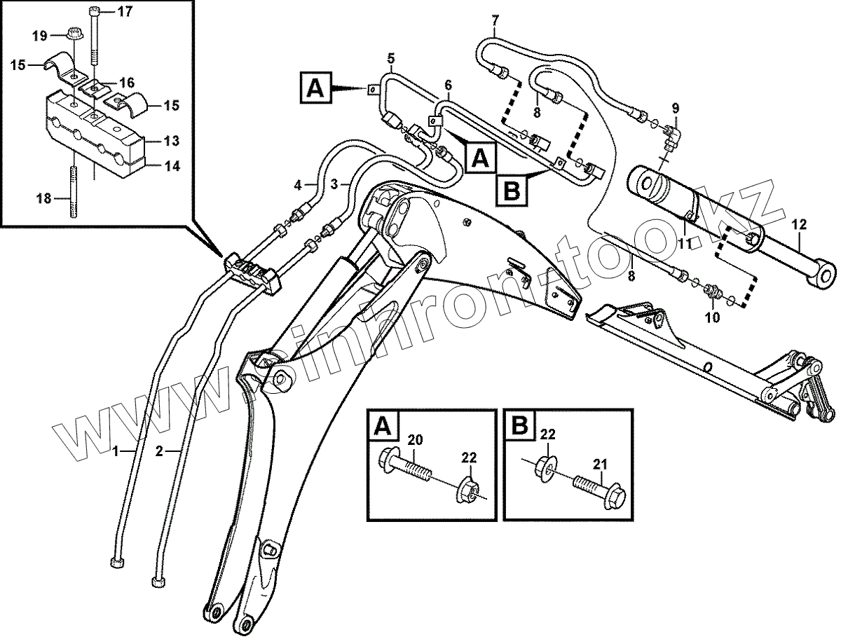 Каталог запасных частей к технике: Volvo BL71. 11891273 S/N - 14669 Hydraulic system, bucket