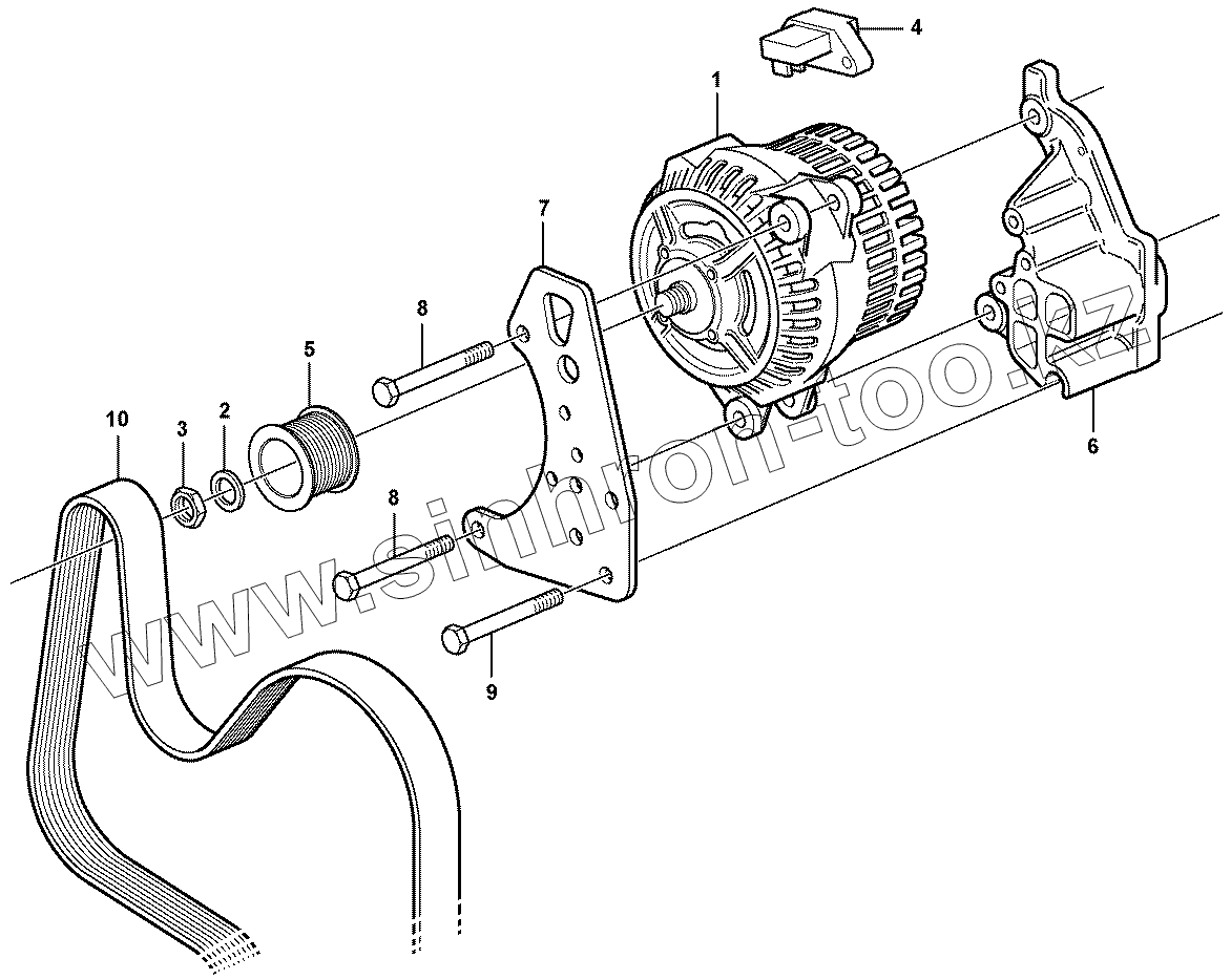 Каталог запасных частей к технике: Volvo BL71. Alternator with assembling details