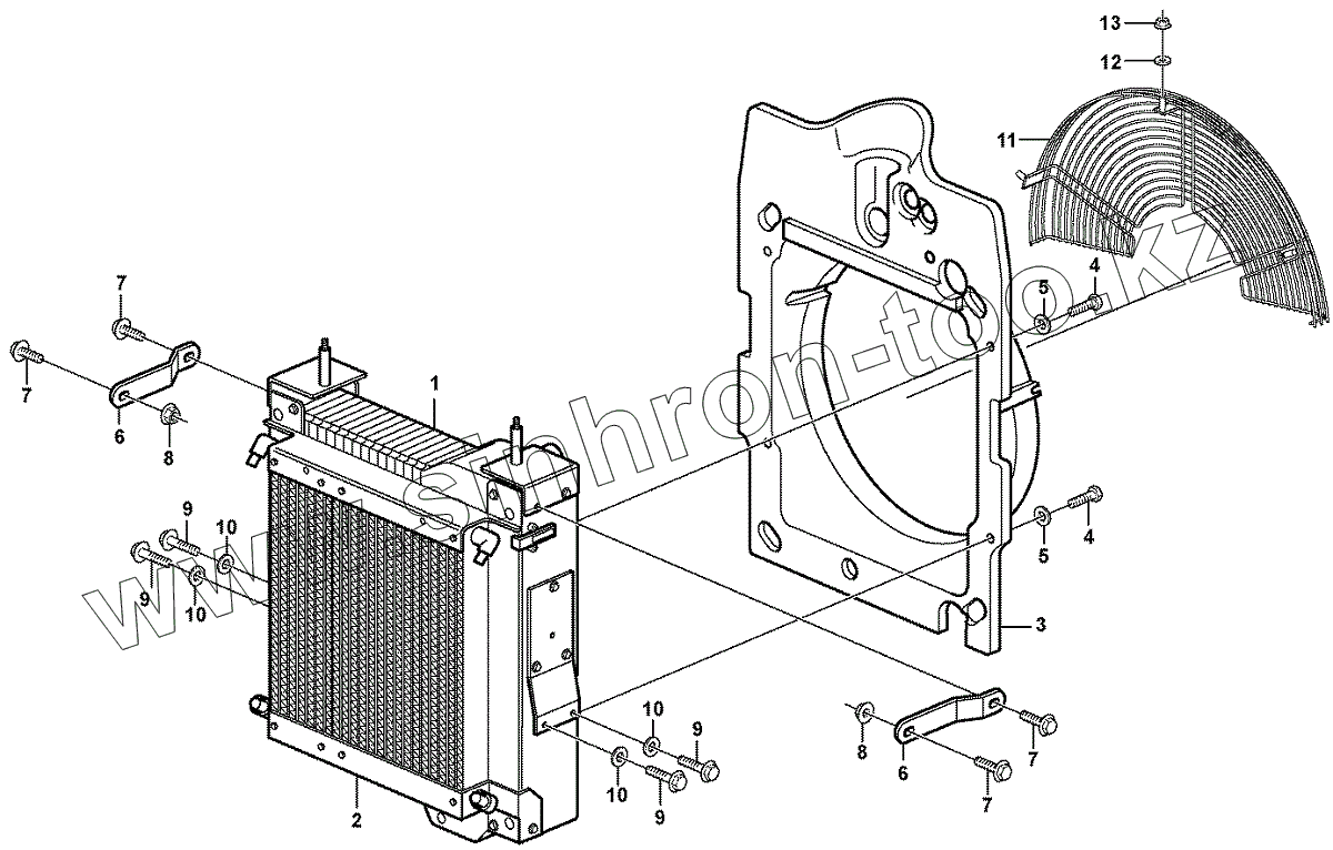 Каталог запасных частей к технике: Volvo BL71 Plus. Radiator with fitting parts