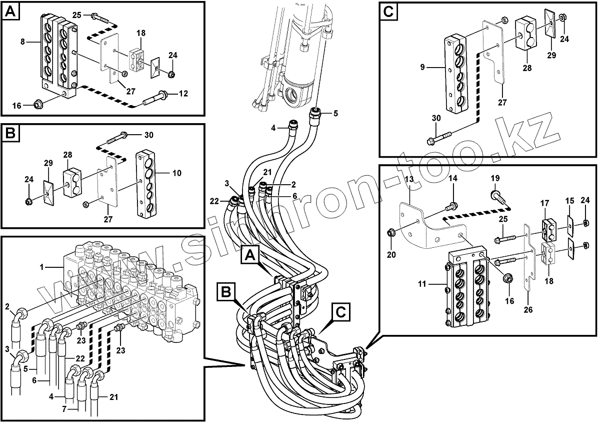 Каталог запасных частей к технике: Volvo BL71B. 11892012, 11895299 Hydraulic system, excavator