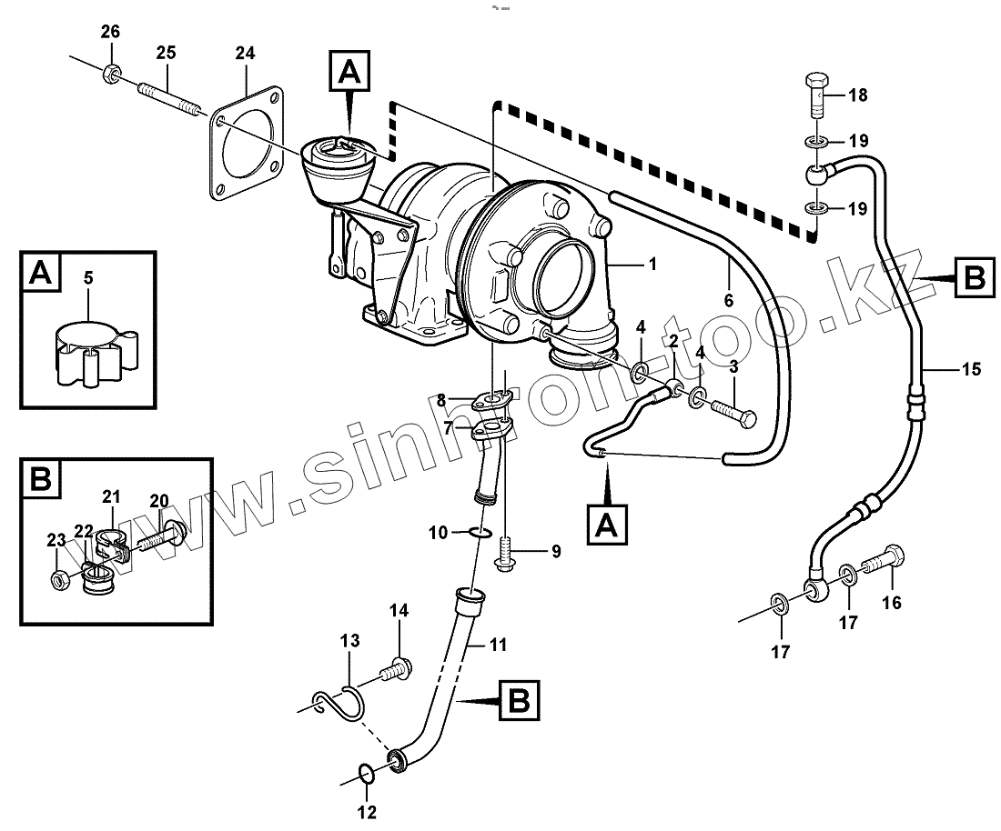 Каталог запасных частей к технике: Volvo BL71B. 11895378, 11895379 Turbocharger with fitting parts