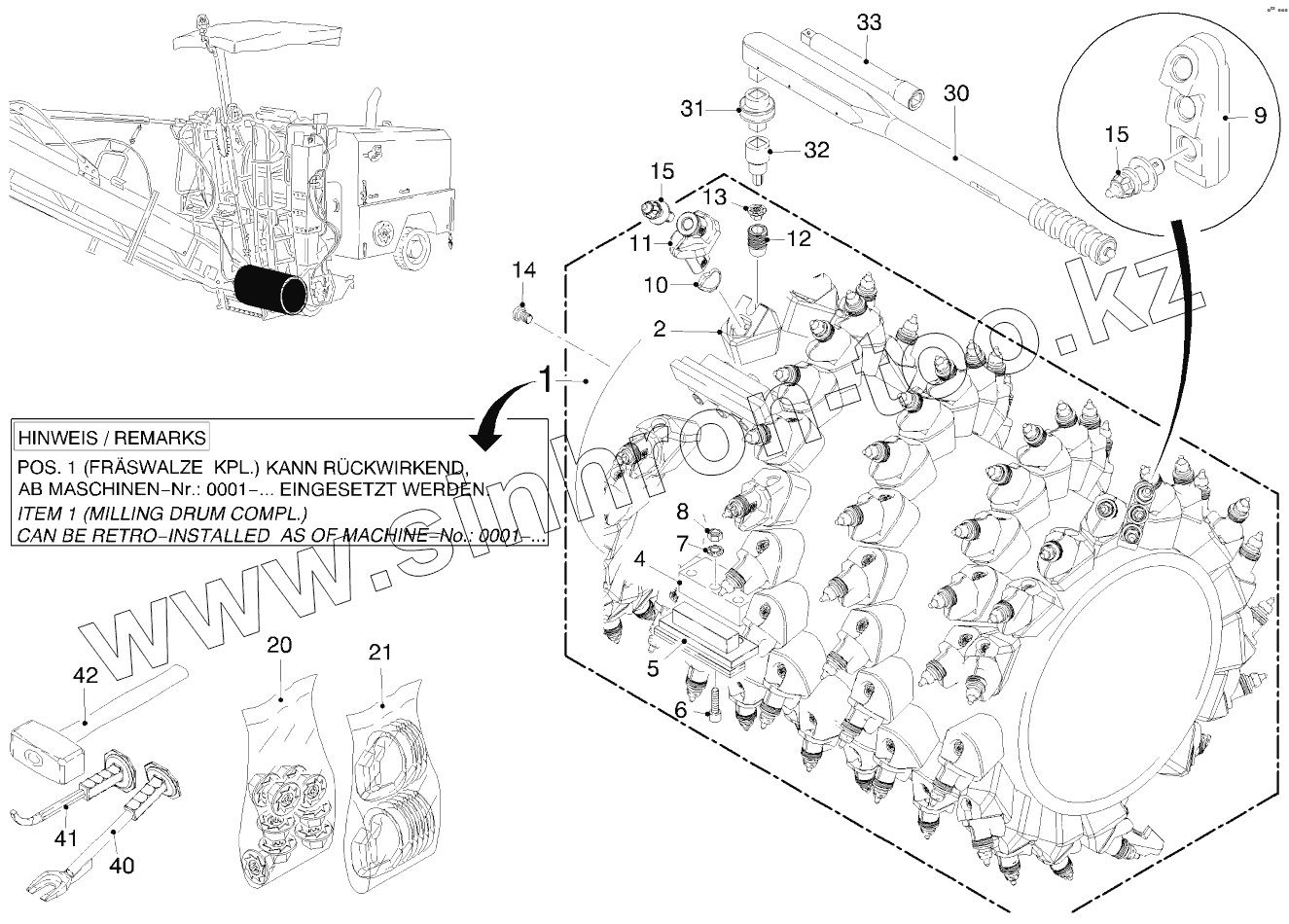 Каталог запасных частей к технике: WIRTGEN W1000L. DRUM FB500 HT11 LA15 AW2