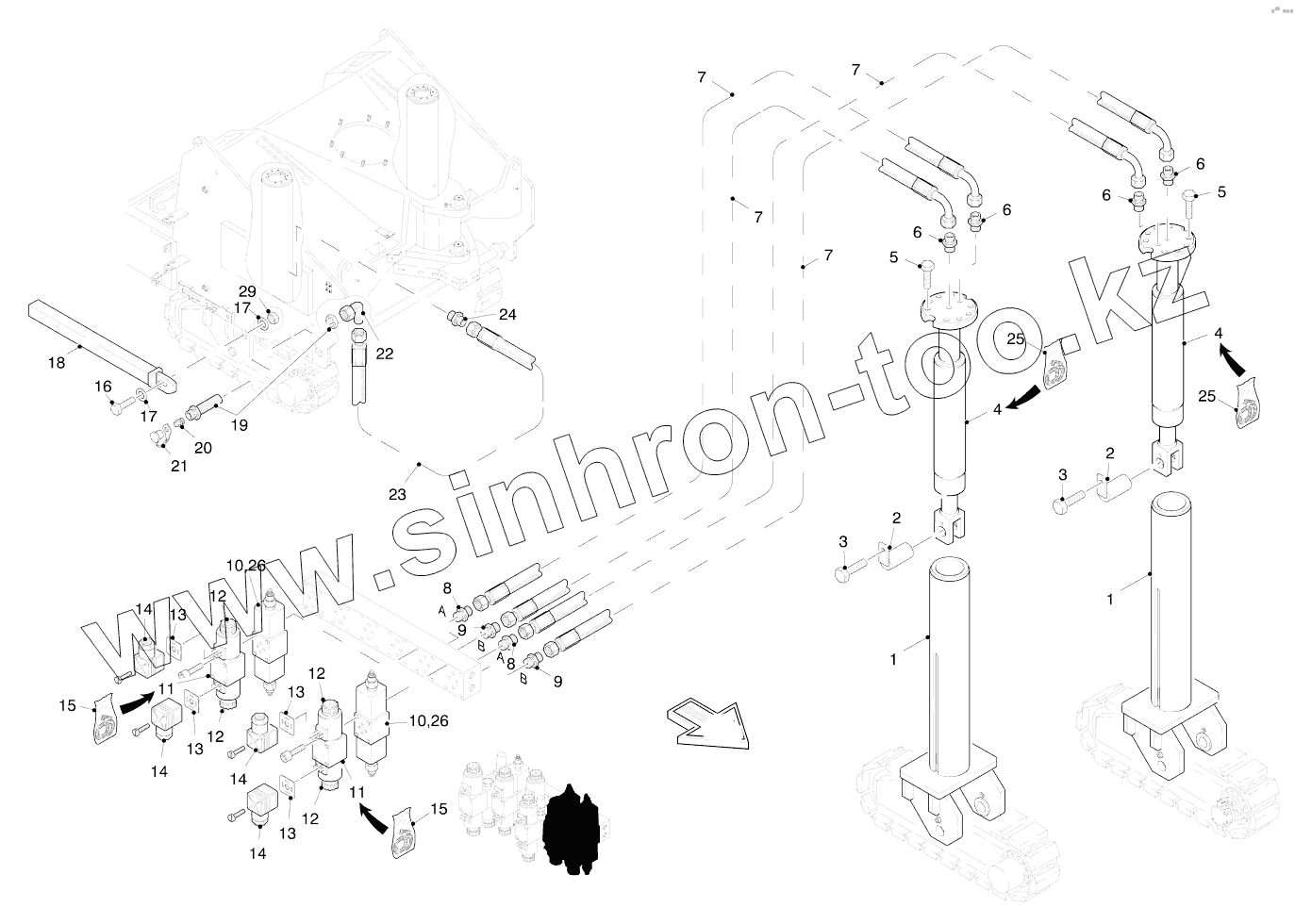 Каталог запасных частей к технике: WIRTGEN W1900. HEIGHT ADJUSTMENT FRONT