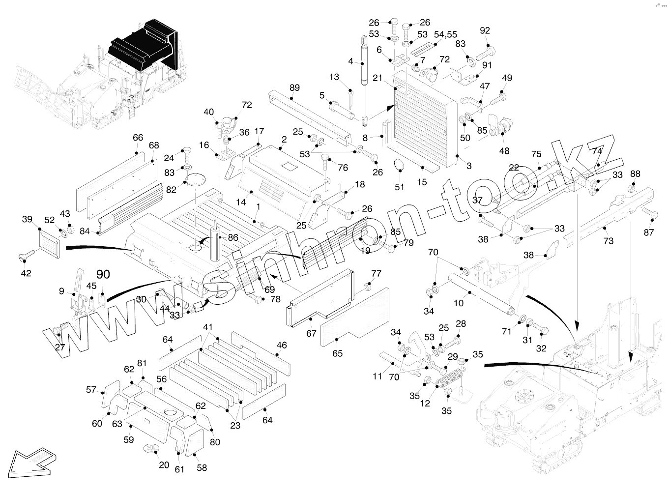 Каталог запасных частей к технике: WIRTGEN W1900. SOUNDPROOFING UPPER PART/REAR