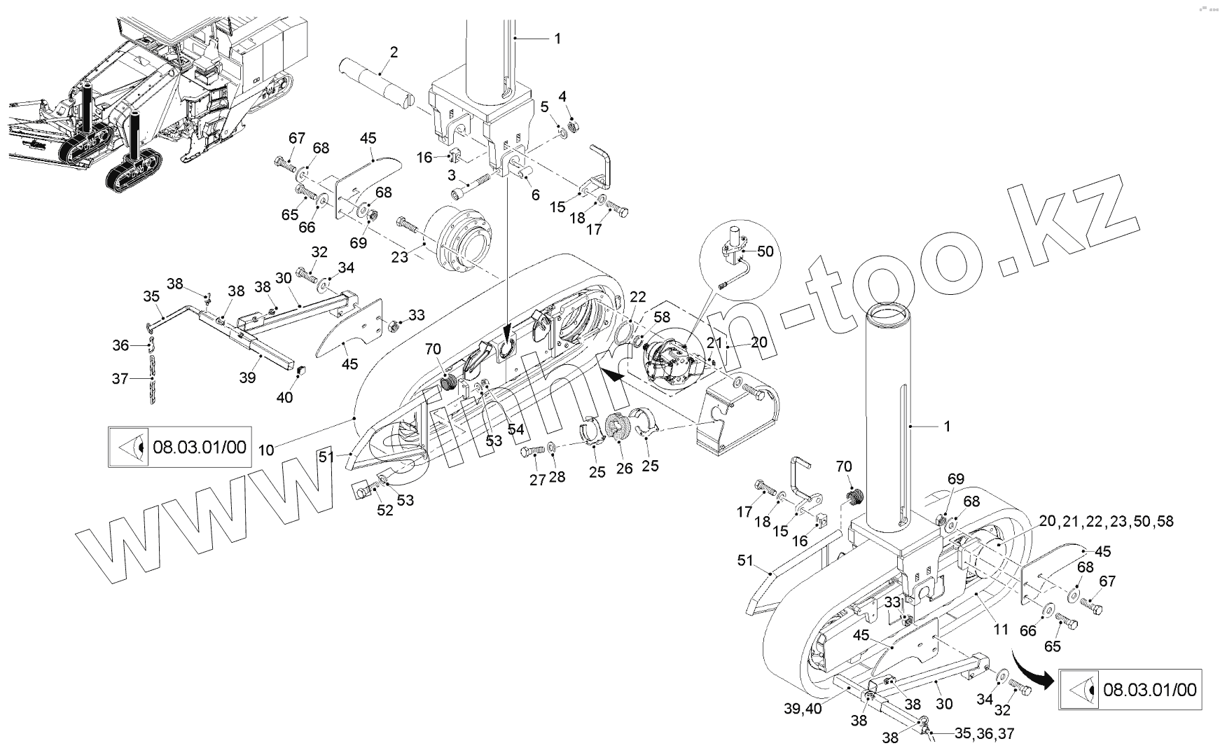 Каталог запасных частей к технике: WIRTGEN W200. CRAWLER UNIT FRONT